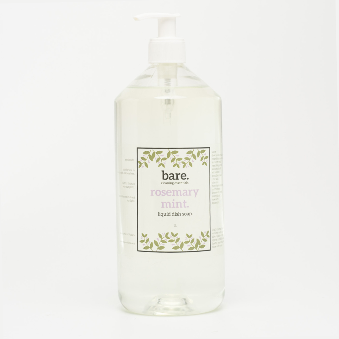 A highly concentrated natural dish soap that is gentle on your hands. Made with Vitamin E, natural ingredients and bare.’s custom blend of essential oils.